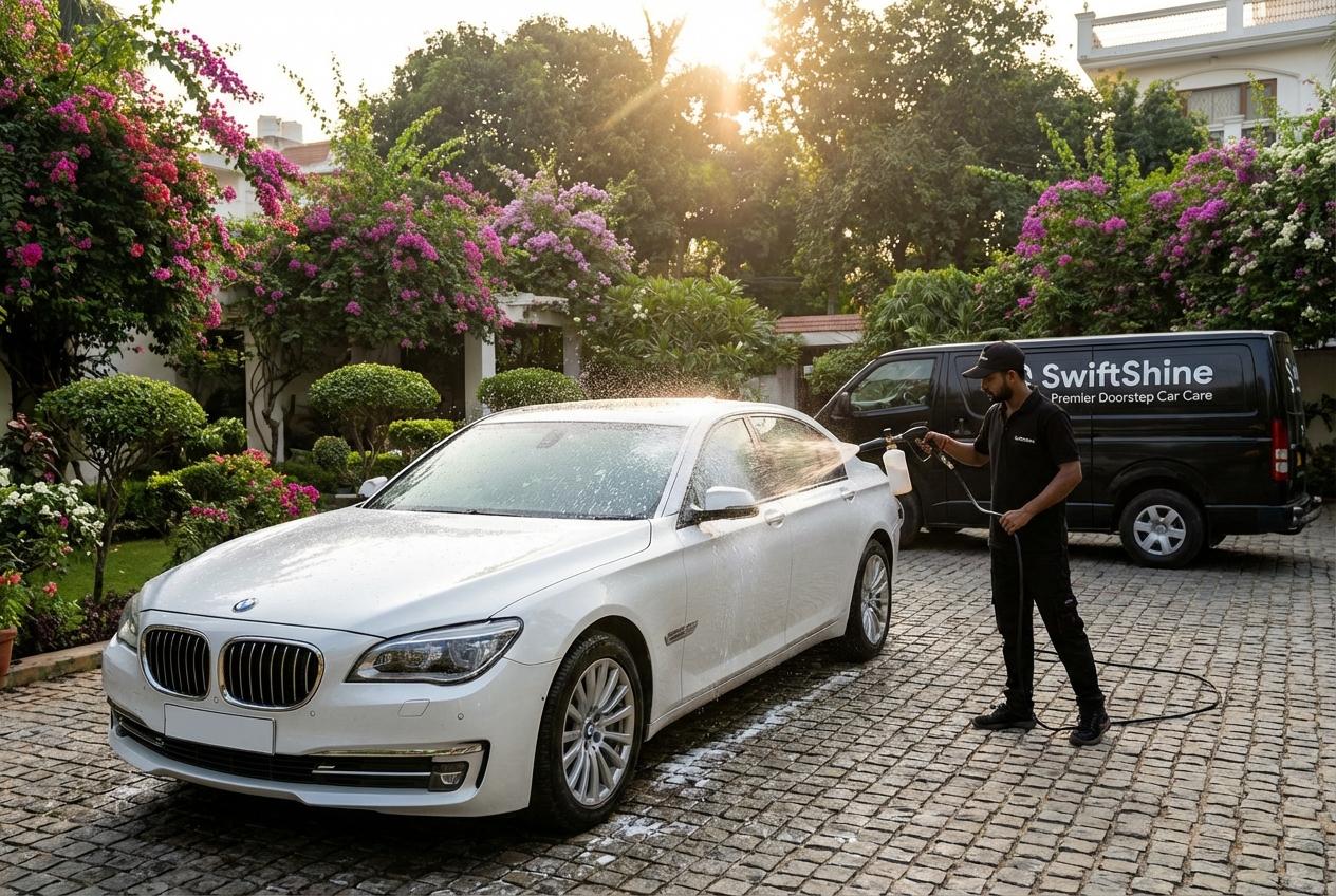 Premium doorstep car wash services with eco-friendly products and trained professionals. Book via WhatsApp for instant confirmation!